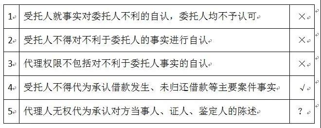 从第1至4点可以看出,要在授权委托书中排除代理人的自认权限,不能仅以概括式的声明进行排除,必须对排除事项在相当程度上予以明确。那么,对于第5点是否具有排除自认权限的效力呢?留给大家思考和探讨。
